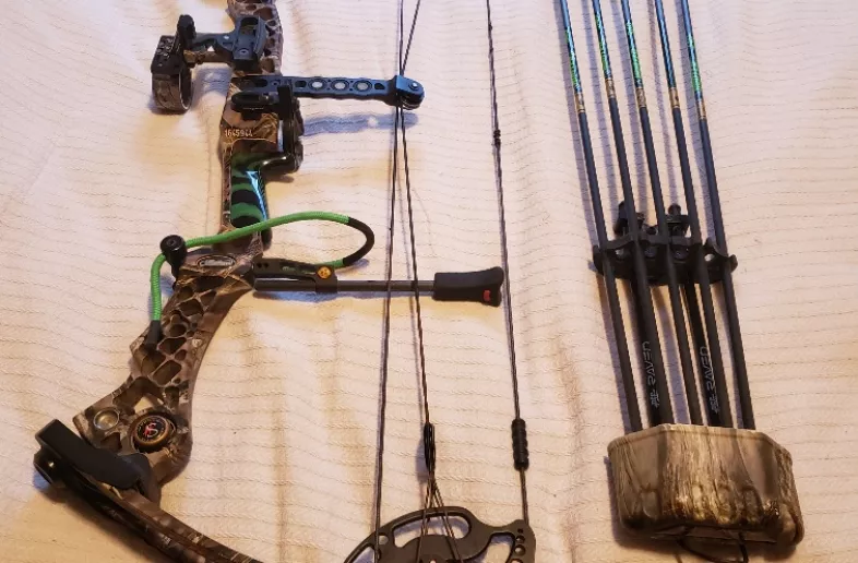 Mathews bow has 27.5" draw length; 70lb let-off weight; comes with full set up as in picture. 10 x 340 Hunter gold tip arrows & quiver. Buyer pays shipping.