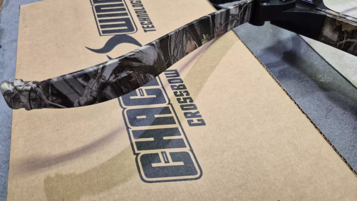 compression molded Limbs and a finely engineered plastic stock and aluminum riser that is coated for a comfortable feel and finished in camo