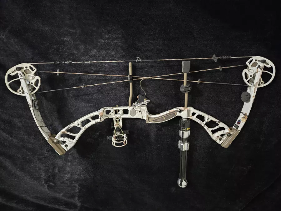 As new elite hunter in beautiful snow camo, ripcord rest, tooless aj. Sight, super stix, stab. A perfect balance of being silky smooth & speed, the hunter is truely " the worlds most shootable bow" shot only a couple of 3d shoots & in perfect shape with not a mark on it, lazer tuned & shooting darts, can ship all canada once paid by e transfer