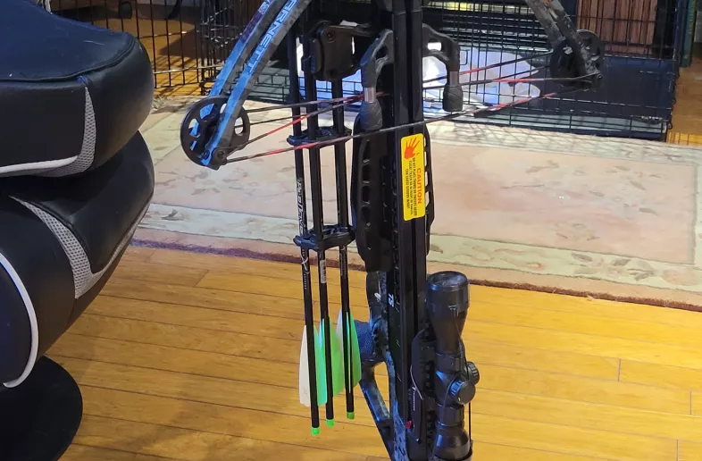 Comes with a scope, clip on quiver and 7 brand new bolts.