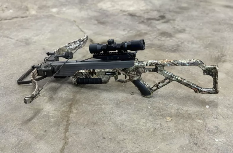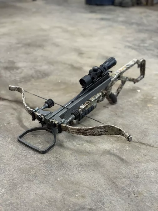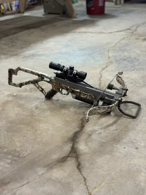 Used for one year and killed a deer with it. Switched to compound this year and no longer need. Bow is sited in and ready to go. Comes with soft shell case, quiver, cocking aid, rail lube and 4 arrows with practice tips