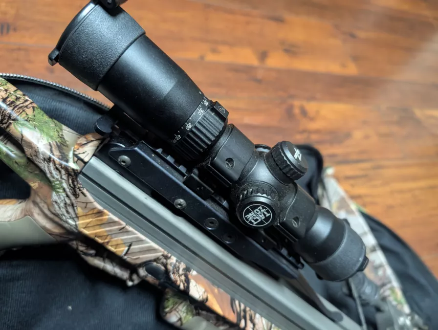 Excalibur mini 335. Mint condition. Illuminated scope, green/red. SILENT Excalibur cocking aid. Dampers. Tuned for 20" gold tip 395 bolts, she's a tax driver. Comes with all accessories seen in the photo including the original bolts. All arrows equipped with luminock nocks. Ready to shoot right out of the bag.