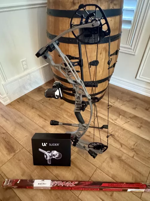 Hoyt Alpha X 30, 70-80lb draw, #3 draw mod, Hoyt integrate rest, Hoyt stabilizers, side bar attachment, Hoyt quiver, Ultraview slider, 12 black eagle rampage arrows. Perfect like new condition. $3200.