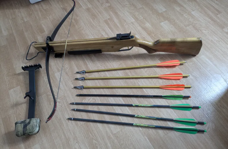 Good old crossbow in great shape. It comes with the quiver and arrows. I ship via Canada Post throughout Canada at the exact postal rate.