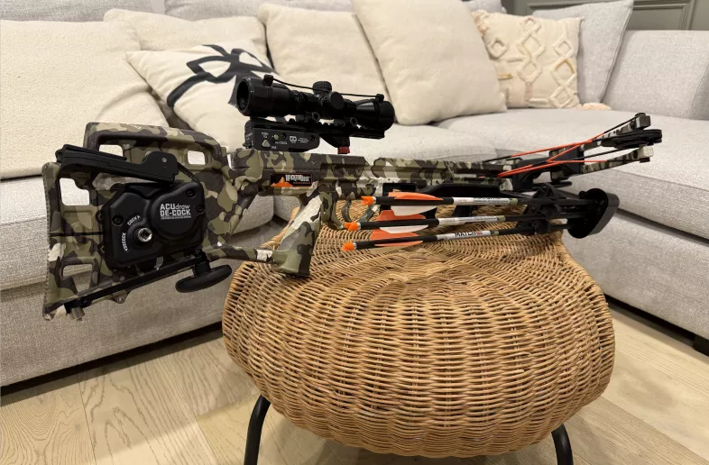 Comes with 8 carbon arrows. Has some scratches from normal wear. I can text you photos if needed.