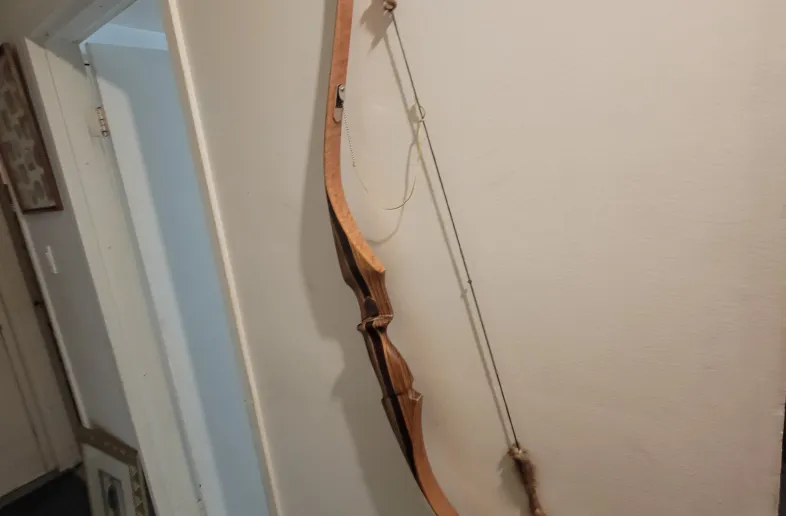 right-hand Recurve bow made by Richard Reed, 60", 56 lbs. @ 25'' so = to 62 lbs. @ 28''