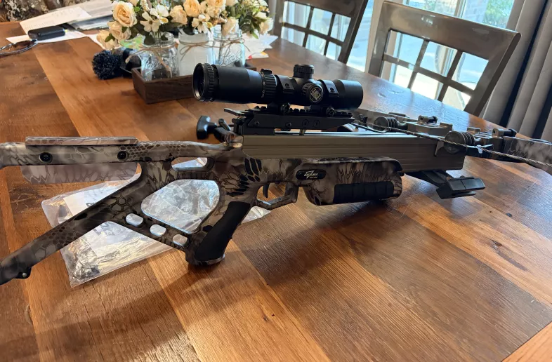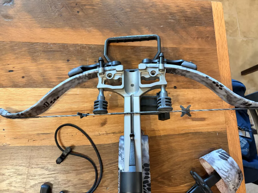 Micro 335 finished in kryptek raid camo. Comes with rope cocking aid, four bolt quiver, field points and tac zone scope. Asking $700
