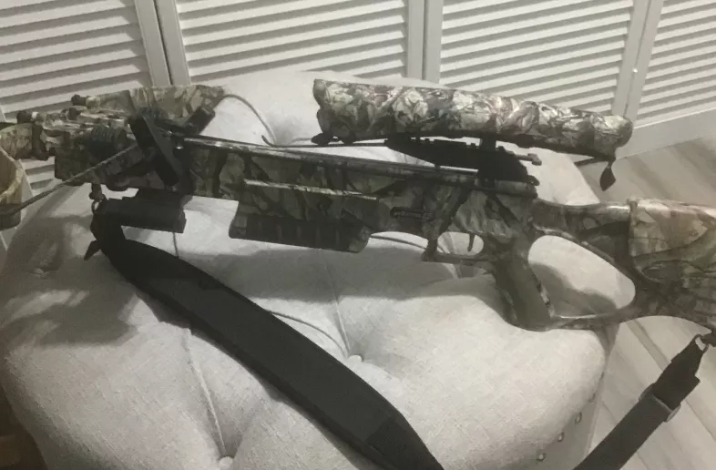Excellent shape 405 ft./s comes with Cocking aid, bow cover , accurate at 60 yards, comes with quiver and bolts.ftf pick up .New string, ready for hunting season. thanks for looking.