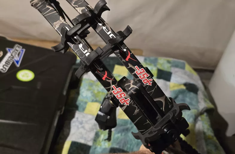 Pse omen. Comes with everything needed to start hunting! Scott release, lots of arrows and a hard stand up case. Bow is set at 70 pounds 29 inch draw