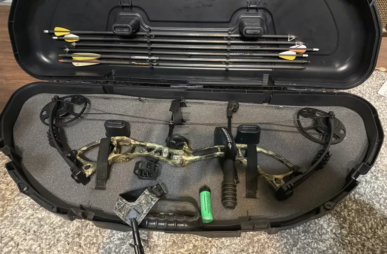 Diamond edge xt been used a dozen times or so shoots very accurately even around 40-50 meters. Slight fray at d loop only wear on the bow currently. Strings have been taken care of and waxed. Arrows and heads included same as all gear in photos.