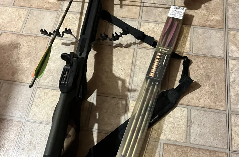 Barnett Demon crossbow with 5 arrows and open sights and case