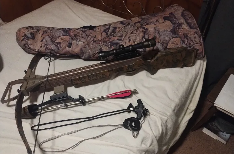In great shape with scope quiver arrows extra string cocking device case $375.00 or gun on trade.