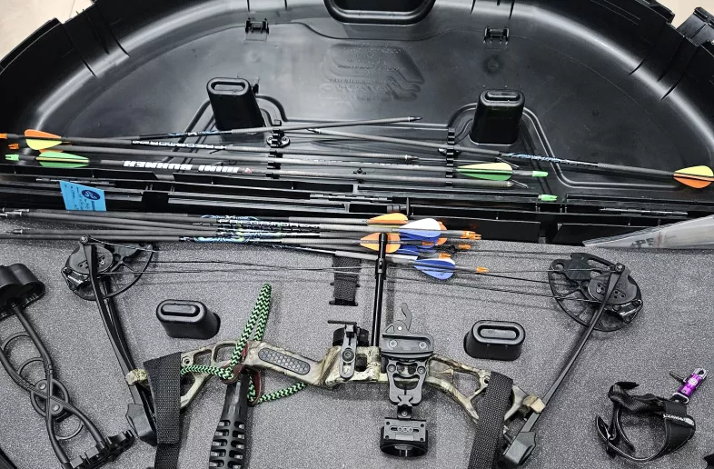 To clarify, the bow is held in the left hand and string pulled with right hand.