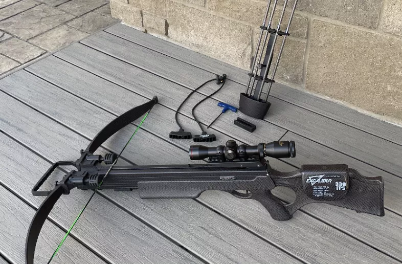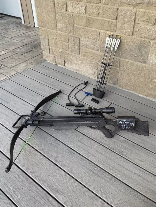 Excalibur eclipse 330fps with arrows and case. Ready to hunt, switched to compound.