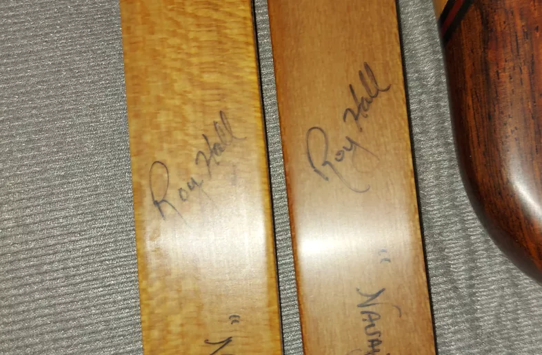 I have a Navajo Scout, made by Roy Hall of Henderson Texas...bow is 62 " long, and comes with 2 sets of serialized limbs...also comes with a couple of flemish strings and all literature that was obtained when the bow was purchased...I have shot this bow for a few years, but being in my 70's I have opted to go down to the same bow in 45 lbs which I have already purchased...limb sets are 50 and 55 lbs...the bow is in absolute great condition, with straight limbs and very very few (if any) noticeable marks from any usage...price is firm, and anyone who knows traditional bows and their makers, will most certainly be familiar with this...I don't have numbers, but I am sure this bow and limbs set would sell for in excess of 1500.00 cdn...not looking for any trades as I have already purchased the new bow, unless you have a vintage winchester rifle you would be willing to part with...