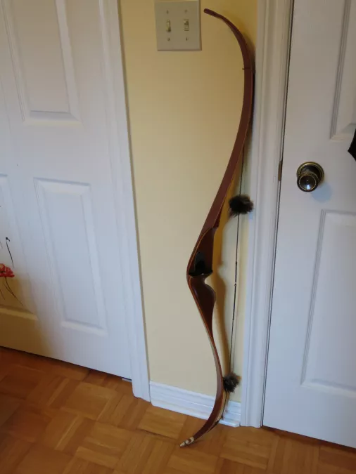 56 inch right hand recurve made by Valkyre Archery. This bow pulls 49 lbs at 28 inches and is in great shape for its age, only a few superficial scratches . This would make a great tree stand or blind bow. It shoots very fast and true. yours for only 275 shipped To major centers.