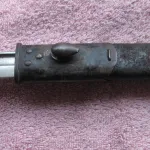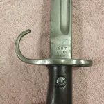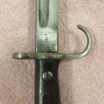 This hooked quillon bayonet is a scarce 115+ year survivor. Maker James A Chapman, estimated to have produced only 14,000, this figure from Skennerton's "British & Commonwealth Bayonets". Compare to Enfield producing 175,000+ bayonets. After 1913 the quillon on this pattern was removed in production and when returned for repair. The scabbard is scuffed and worn but the seam is tight. Mailing anywhere included.