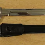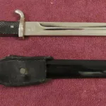 Excellent condition, bright blade 9 3/4 inches long, clean black enamel on scabbard, with frog. One small chip in the scabbard finish. Mailing anywhere, $20