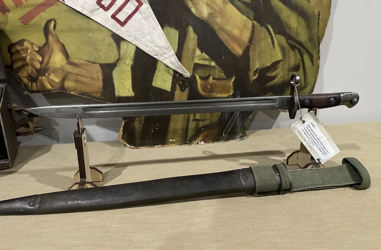 Well, you don’t see these too often. This is a British for experimental pattern 1913.276 rifle with US and Remington markings and redesigned as a model 1917 US Bayonet for the P14 rifle and also works with Winchester trench guns.