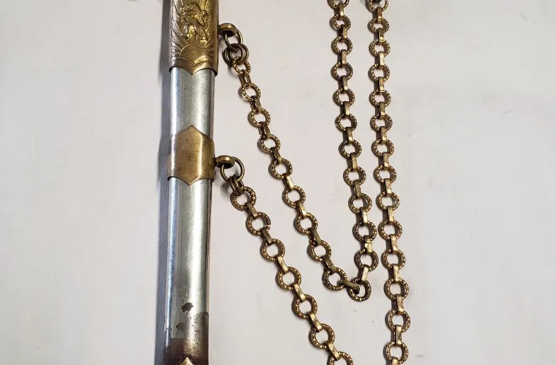 Post Ww2 bulgarian army parade officers dirk dagger with scabbard and chain hanger. Zoom in on pics for actual condition.ship on buyers dime