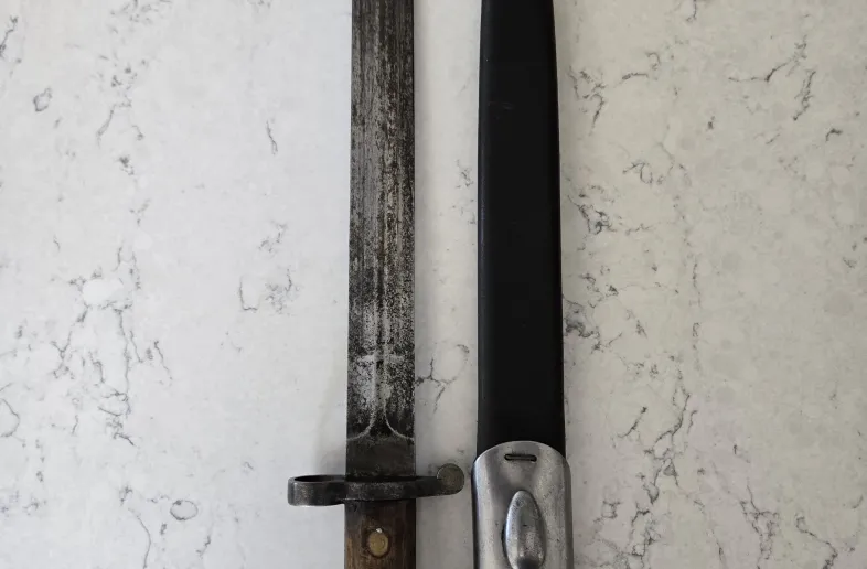 Sanderson bayonet for the Lee Metford or Long Lee Enfield dated 09.97. This is the Mk I Second type with cleanout hole in handle.