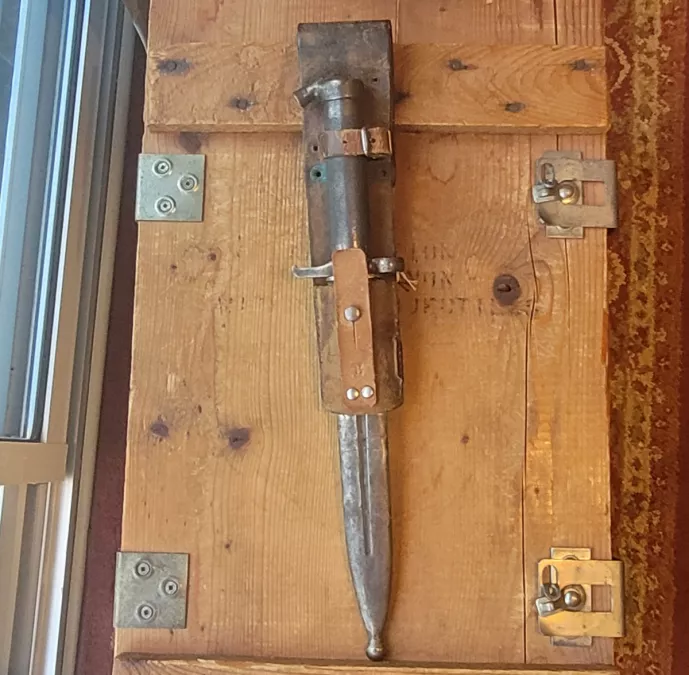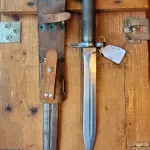 Swedish M1896 bayonet with frog. The small rivets in the scabbard need repair, but they are not serious.
