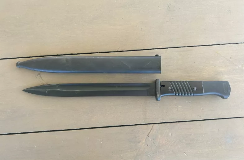 War era German bayonet for your K98! Overall in really great shape, some light wear, but bluing on blade still excellent. Wehrmacht proofmarks on pommel as seen in picture.