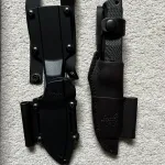 Brand new Benchmade Bushcrafter mini knife. Cruware steel, carbon fibre scales, 2 sheaths leather and original kadex, box. Everything you would get new plus the leather sheath. Never use, got for Xmas but wanted a folder which I picked up.