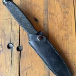 The thick leather sheath has been custom made and it fits the knife perfectly.