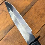 The knife never cut anything. Very sharp 1050 carbon steel edge. Knife feels great in hand. Long handle allows for multiple gripping options.