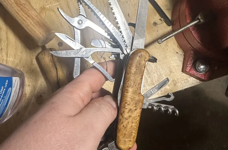In good condition,everything works and is there minus the tweezers and toothpick.