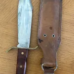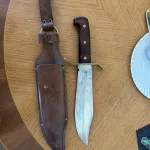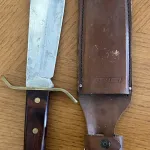 Coleman western m49 in good shape, needs a good polish on the blade as it has picked some patina along its travels, still has original edge on it. The knife has spent it’s entire life in a hunting box and now needs someone that will appreciate it