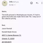 A rare specimen and example of the number 1 fighter with Westinghouse paper micarta handle.