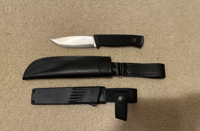 Brand new F1 Pilot Survival knife VG-10 steel. Comes with Zytel sheath and dangler leather sheath. The standard issue survival knife of the Swedish Air Force since 1995. Picture compares thickness to Swiss Army knife and larger Fallkniven A1 Army knife. Shipping at buyer’s expense or local pick up in Calgary, AB,