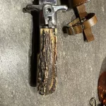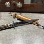 Up for grabs is a German style large folding hunting knife. The knife is in very good condition with very little wear. I believe it is made by the Italian firm Mercury, but am unsure. Lockup is excellent with no blade play and appears to still have the factory edge. The articulating button used to unlock the knife appears to be missing a spring to hold it captive when in the open position. More pictures upon request. Shipping can be had through Canada post for $20. Cheers!