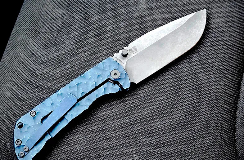 Mcnees PM MAC2 3.5" Rock Texture with Atomic Blue Anodized Ti scales.