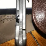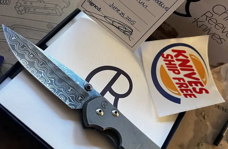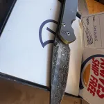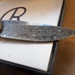 The Damascus blade is in great shape, but the handles have several snail trails from being carried in a pocket. No box, but I have the original CRK paperwork/birth card to verify the build. As smooth as you’d expect from a 21—glassy and consistent. Perfect centering and bank-vault lockup. It’s a beautiful configuration that’s ready for the pocket or a Spa treatment to buff out the scales. Comes with leather carry sleeve/birth card. $1250 Prefer EMT. Prefer local will ship with insurance if we split.