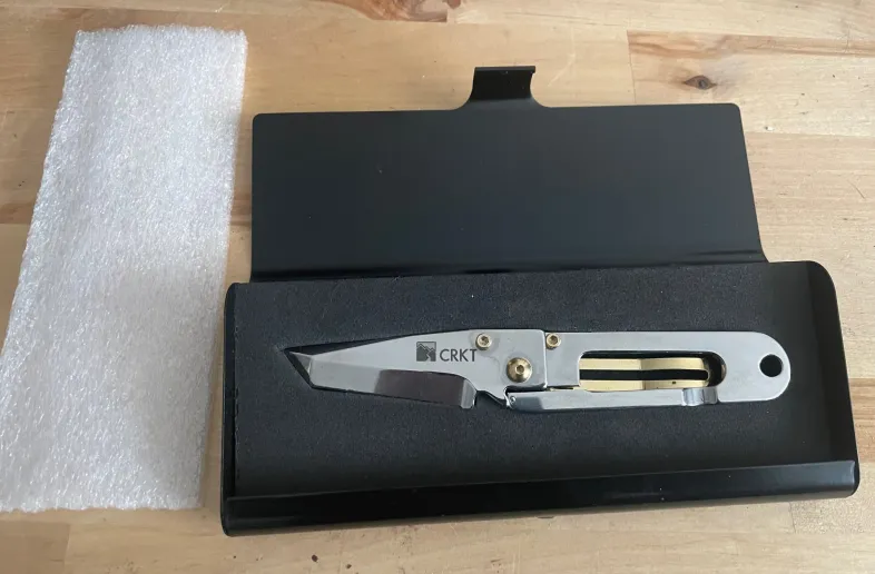 This is a great original CRKT KISS from the 2001 Shot Show. Not only is it getting harder to find the old KISS with gold trim, but it is almost impossible to get one of these now.