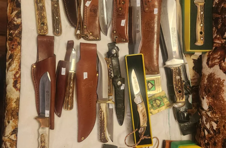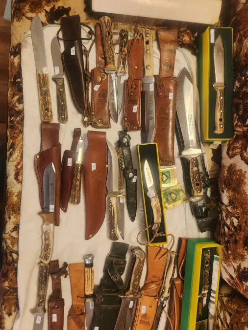 Collection of 45 puma knives , one hatchet ,dealer sign. Some new in boxes. Includes some very rare pieces. Prefer to sell as a lot. Will entertain high quality firearm partial trade.