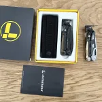 Comes with box, sheath, manual, adjustment wrench, and tool as shown