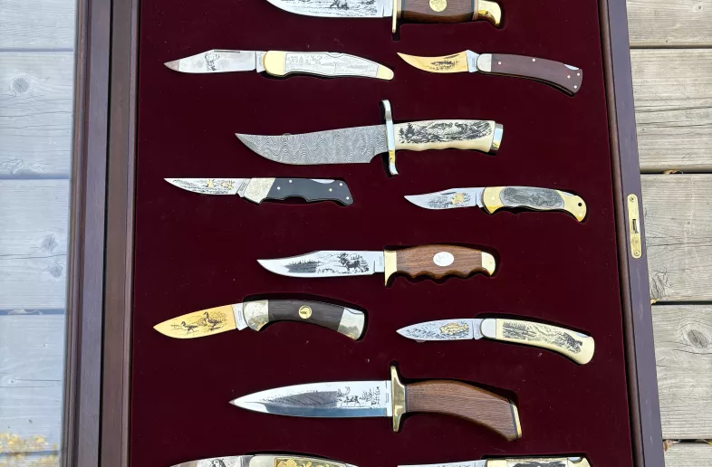Can ship. Solingen German knives. Made in Germany. Total of 12 Knives Complete set with glass case. Asking $600 for all of them including the case. . Shipping cost extra.