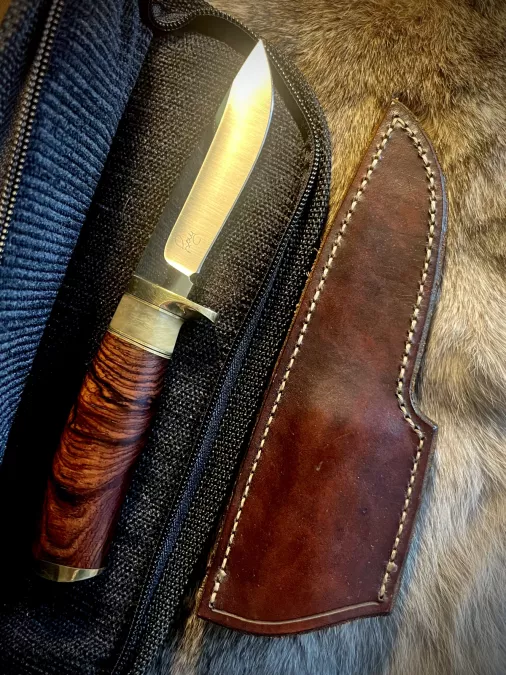 BOB LAY IS A CANADIAN WORLD RE-KNOWN CUSTOM KNIFE MAKER , AMERICAN GUILD MEMBER , 49 YEAR CAREER , HAS MAJOR U.S MARKET, MANY BEST IN SHOW AWARD WINNING KNIVES. #1 HAS A JUST UNDER 4 IN" 154 CPM STEEL BLADE , HOLLOW GROUND , MIRRORED POLISHED FLATS , HAS A BEAUTIFUL ROSEWOOD HANDLE , CALIFORNIA BIG HORN SHEEP SPACER , THIN BLACK LINE SPACERS FOR TEMPERATURE FLUXUATIONS , BRASS GUARD & BUTT CAP , QUALITY HANDMADE SHEATH BY JUD LAY , QUALITY CONDURA ZIPPERED POUCH , NEVER USED OR CARRIED , $545 EMT NO TRADES FREE SHIPPING * FEDEX