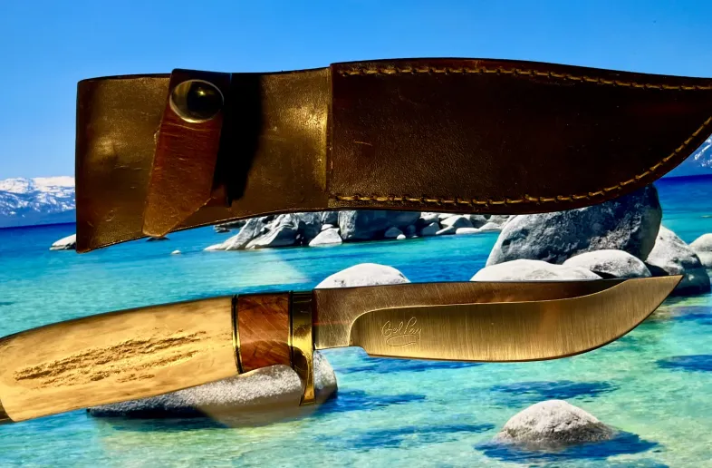 NEAR MINT* " BOB LAY KNIFE HAND MADE CUSTOM KNIVES " "MY KNIFE" FULL NAME SIGNATURE , THIS IS BOB LAYS , OWN HUNTING KNIFE FROM 2025 , DRESSED ONE MOOSE LAST FALL . ELK STAG HANDLE - 5 in" CPM154 STEEL BLADE , HOLLOW GROUND MIRROR POLISHED , REDDISH BOX ELDER STABILIZED SPACER ,THIN LINE BLACK SPACERS FOR TEMPERATURE FLUCTUATION, BRASS GUARD & ALLOY BUTT CAP , LEATHER SHEATH MADE BY MAKER , QUALITY CONDURA LINNED ZIPPERED POUCH FULL PACKAGE $550 EMT NO TRADES FREE SHIPPING*