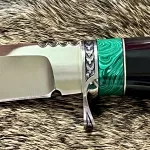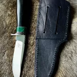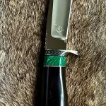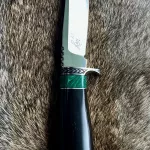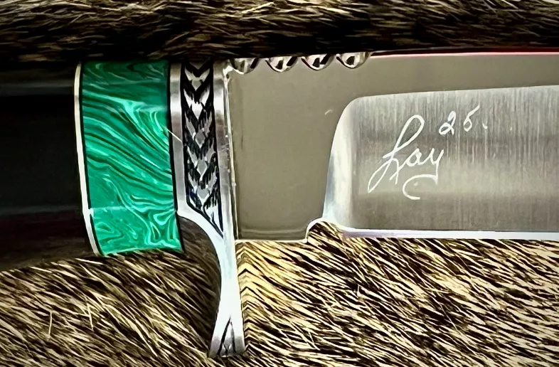 SOLD PENDING $ *** A MINT RARE VINTAGE BOB LAY ANNIVERSARY CUSTOM KNIFE MADE 2001 , BOB LAY IS CANADIAN WORLD RE-KNOWN CUSTOM KNIFE MAKER , AMERICAN GUILD MEMBER , 49 YEAR CAREER , HAS MAJOR U.S MARKET, MANY BEST IN SHOW AWARD WINNING KNIVES #1 ASIAN BUFFALO HORN HANDLE , ENGRAVED STAINLESS STEEL GUARD & BUTT CAP BY KEN WARREN , A FAMOUS WINCHESTER RIFLE CUSTOM ENGRAVER <DECEASED> HAS A 4 IN" 440 C STEEL HOLLOW GROUND BLADE , MIRROR POLISHED FLATS , FANCY FILED THUMB GUARD , GREEN MALICITE SPACER , QUALITY HAND MADE STAMPED LEATHER SHEATH BY JUDY LAY , QUALITY ZIPPERED POUCH , WAS IN A COLLECTORS POSSESSION SINCE NEW MADE IN 2001 25TH ANNIVERSARY # 2 IS SOLD ** A MINT FULL PACKAGE COPPER CLASSIC , HAS A 5 INCH" 154 CPM STEEL BLADE , HOLLOW GROUND POLISHED FLATS , BEAUTIFUL SPALTED ALDER HANDLE , HAS BRASS GUARD WITH THIN LINE COPPER SPACERS & DOUBLE RED BOX ELDER SPACERS, ALLOY BUTT CAP WITH THONG HOLE, HAS QUALITY HAND MADE LEATHER SHEATH WITH SHARPENING STONE MADE BY JUDY LAY , HAS QUALITY HAND MADE ZIPPERED CONDURA POUCH