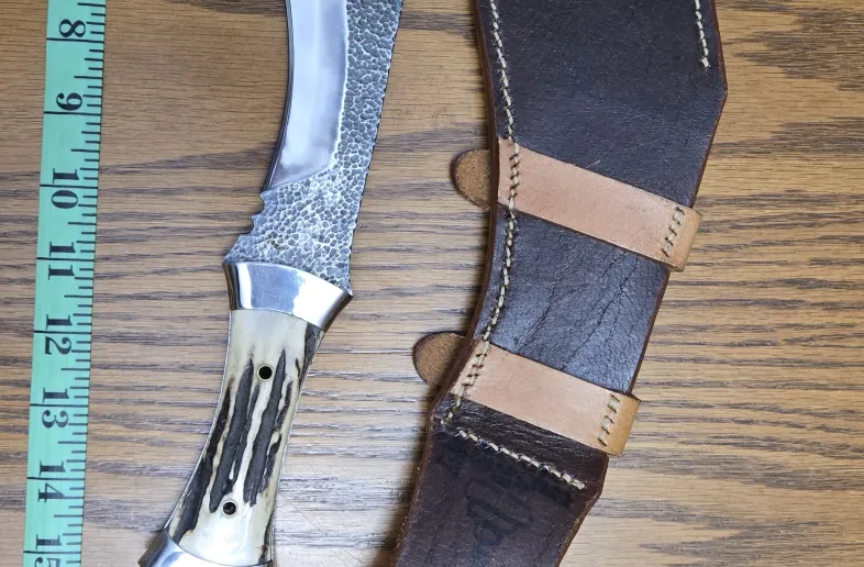 Khukuri dagger brand unknown. 12 inch blade 16 inch total length. Located in lake country bc.