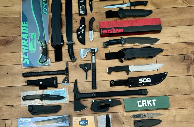 Selling only as a collection, knives, machetes and axes. All new and never used. Sold as a set and not interested in separating, they all go together. Over $2000 value.