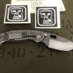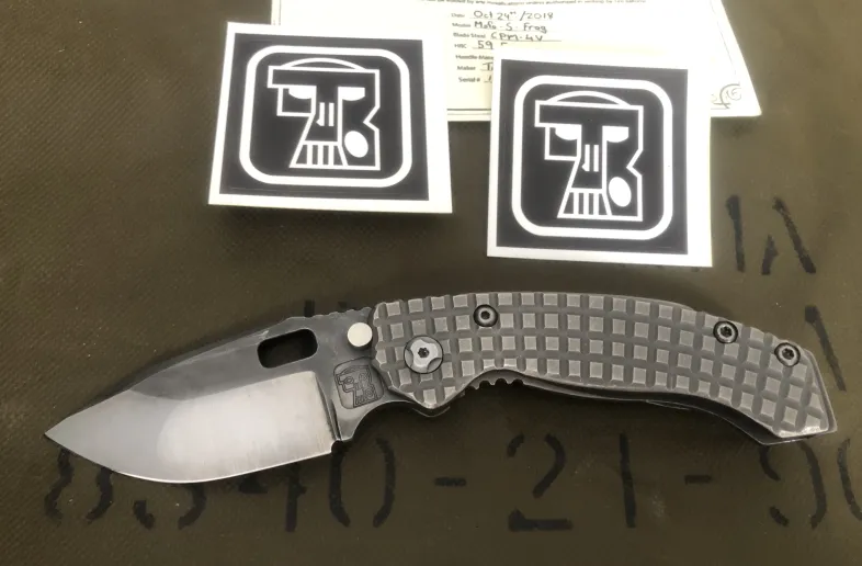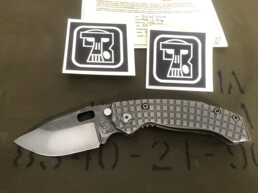 Custom knife by Trouble Blades. Model is the Lil’Mofo from 2018. Full titanium frag scales and a CPM 4V blade. Built like a tank with an amazing action and detent.