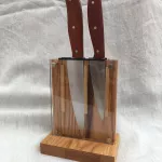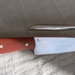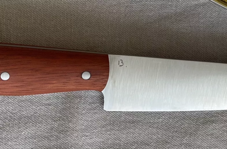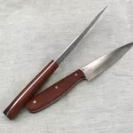 Blade length is respectively - 7” for the chef's knife and 5” for the medium knife made of Elmax steel with Bloodwood handles.