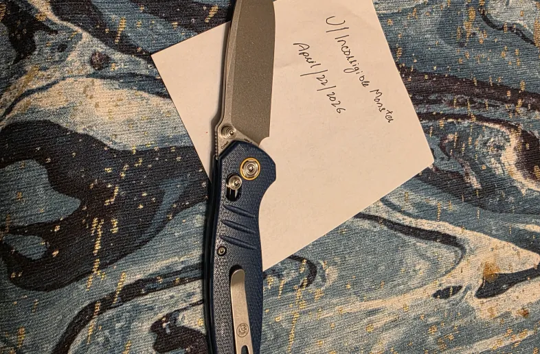 Handle: Blue Micarta (contoured with anti-slip slots)