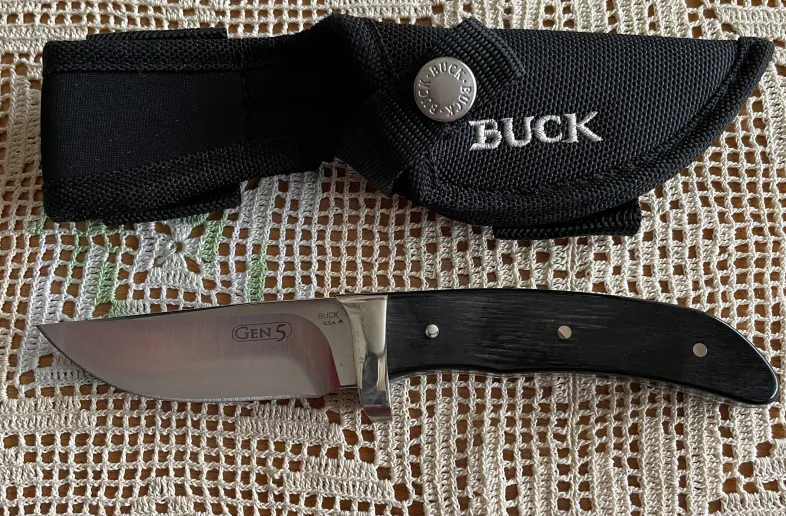 For Sale: This Buck Gen 5 Fixed 3" Blade is made in the USA. It has never been sharpened and is in "excellent" condition. It has a black nylon sheath. Asking Price: $120.00 (shipping not included).